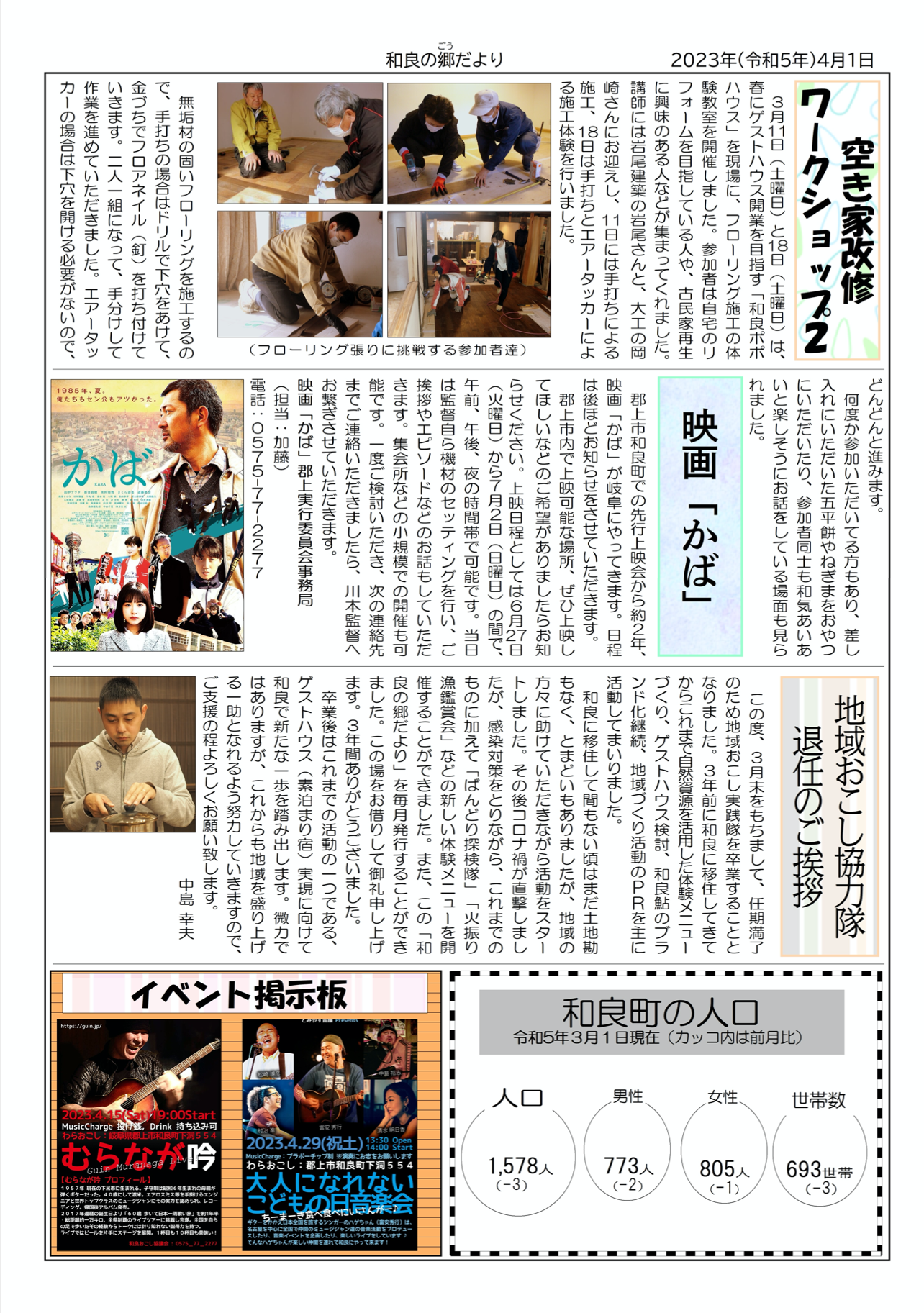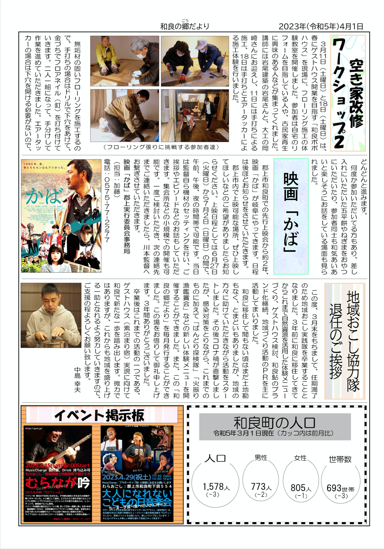 地域新聞「和良の郷だより」 和良の郷だより2023年4月号 ※クリックで拡大表示できます。 和良の郷だより2023年4 月号 ※クリックで拡大表示できます。 過去新聞アーカイブ 2023 1月号 2月号 3月号 4月号 2022 1月号 2月号 3月号 4月号 5月号 6月号 7月号 8月号 9月号 10月号 11月号 12月号 2021 1月号2月号3月号4月号5月号6月号7月号8月号9月号10月号 11月号12月号 2020 5月号 6月号 7月号 8月号9月号10月号 11月号 12月号 2019 1月号 2月号 3月号 4月号 2018 4月号 5月号 6月号 7月号 8月号 9月号外 10月号 12月号 過去新聞アーカイブ2023 1月号 2月号 3月号 4月号 2022 1月号 2月号 3月号 4月号 5月号 6月号 7月号 8月号 9月号 10月号 11月号 12月号 2021 1月号 2月号 3月号 4月号 5月号 6月号 7月号 8月号 9月号 10月号 11月号 12月号 2020 5月号 6月号 7月号 8月号9月号10月号 11月号 12月号 2019 1月号 2月号 3月号 4月号 2018 4月号 5月号 6月号 7月号 8月号 9月号外 10月号 12月号 ページトップへ